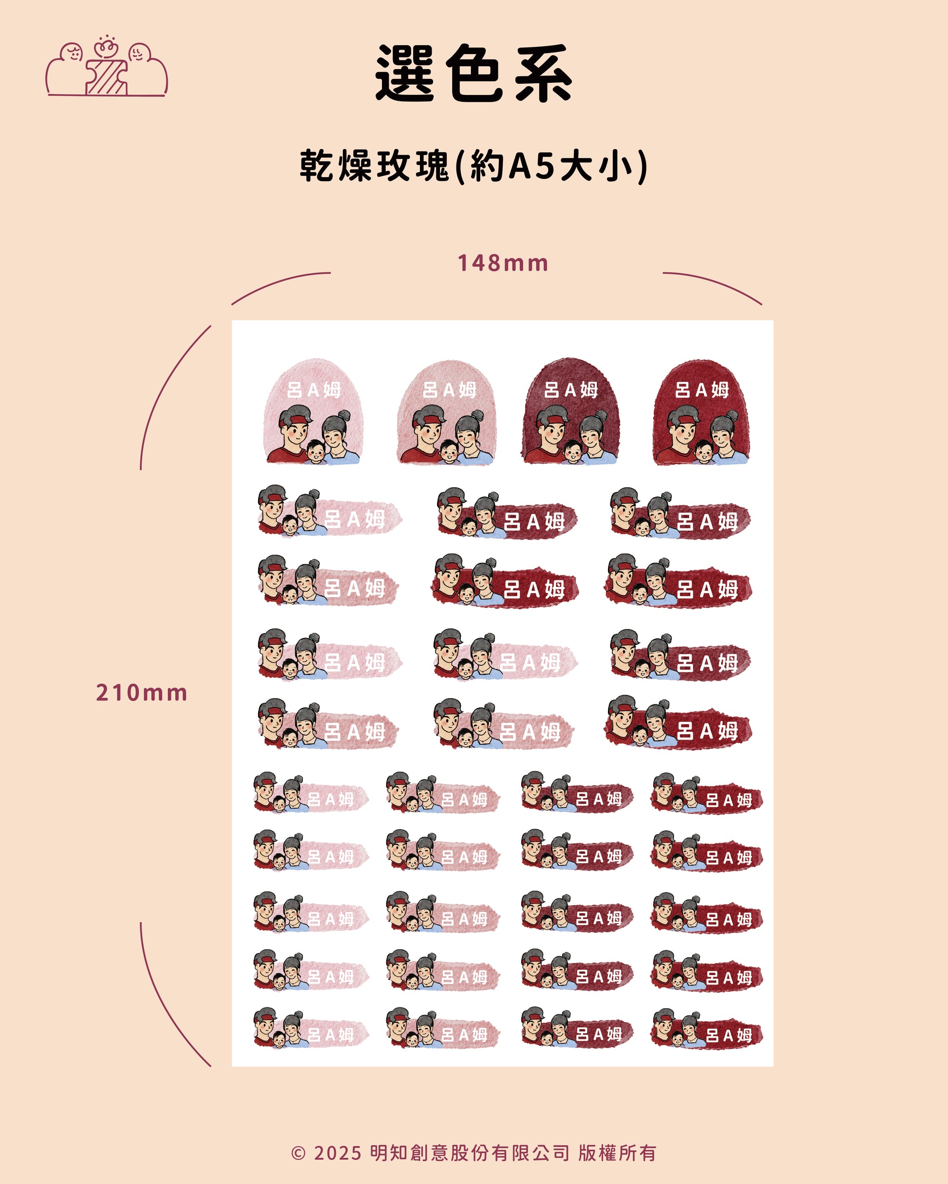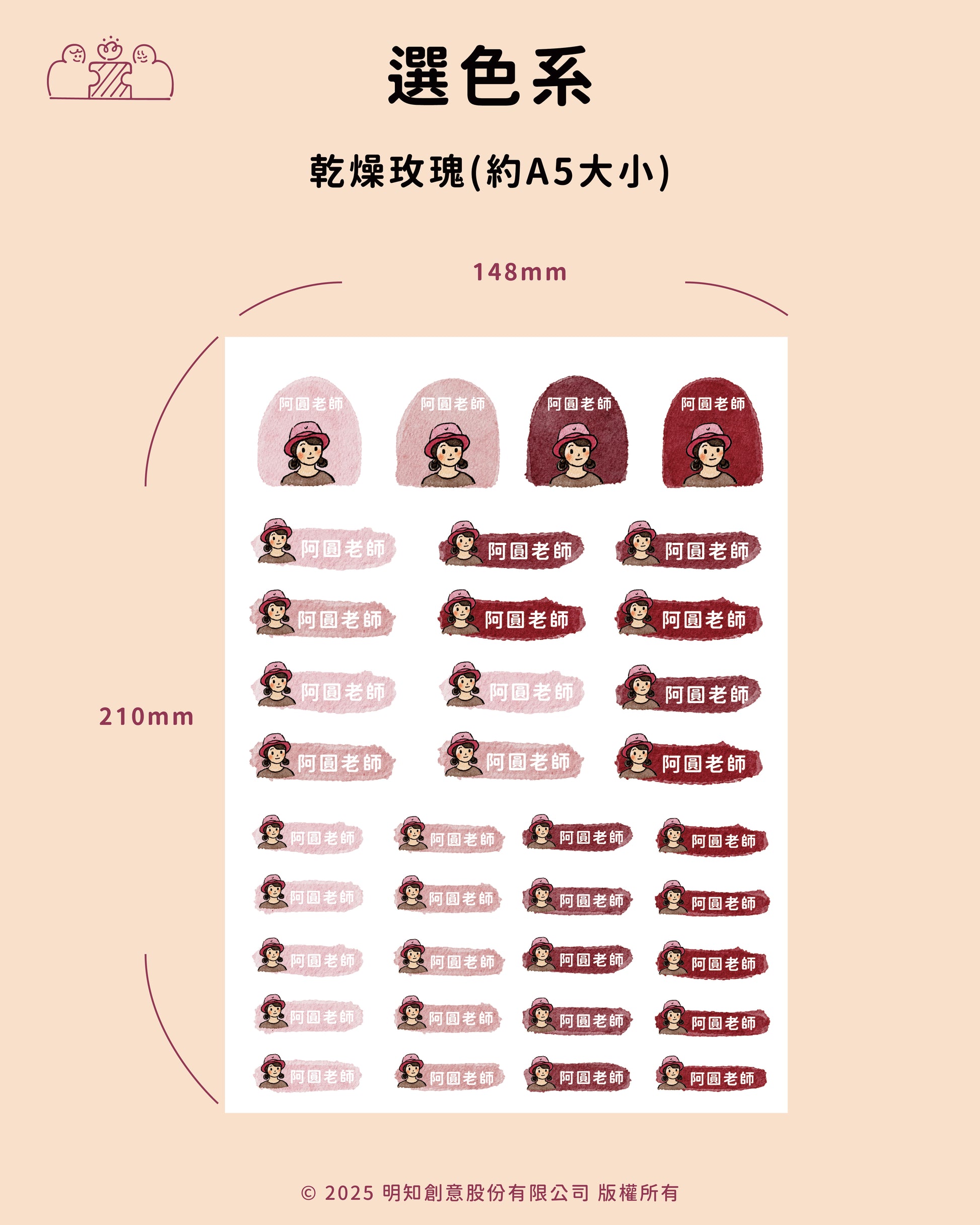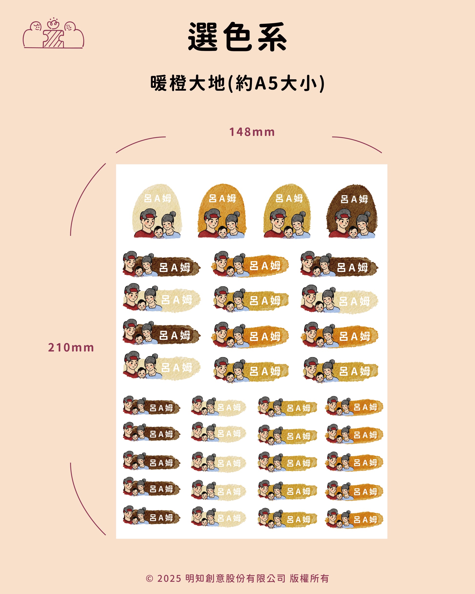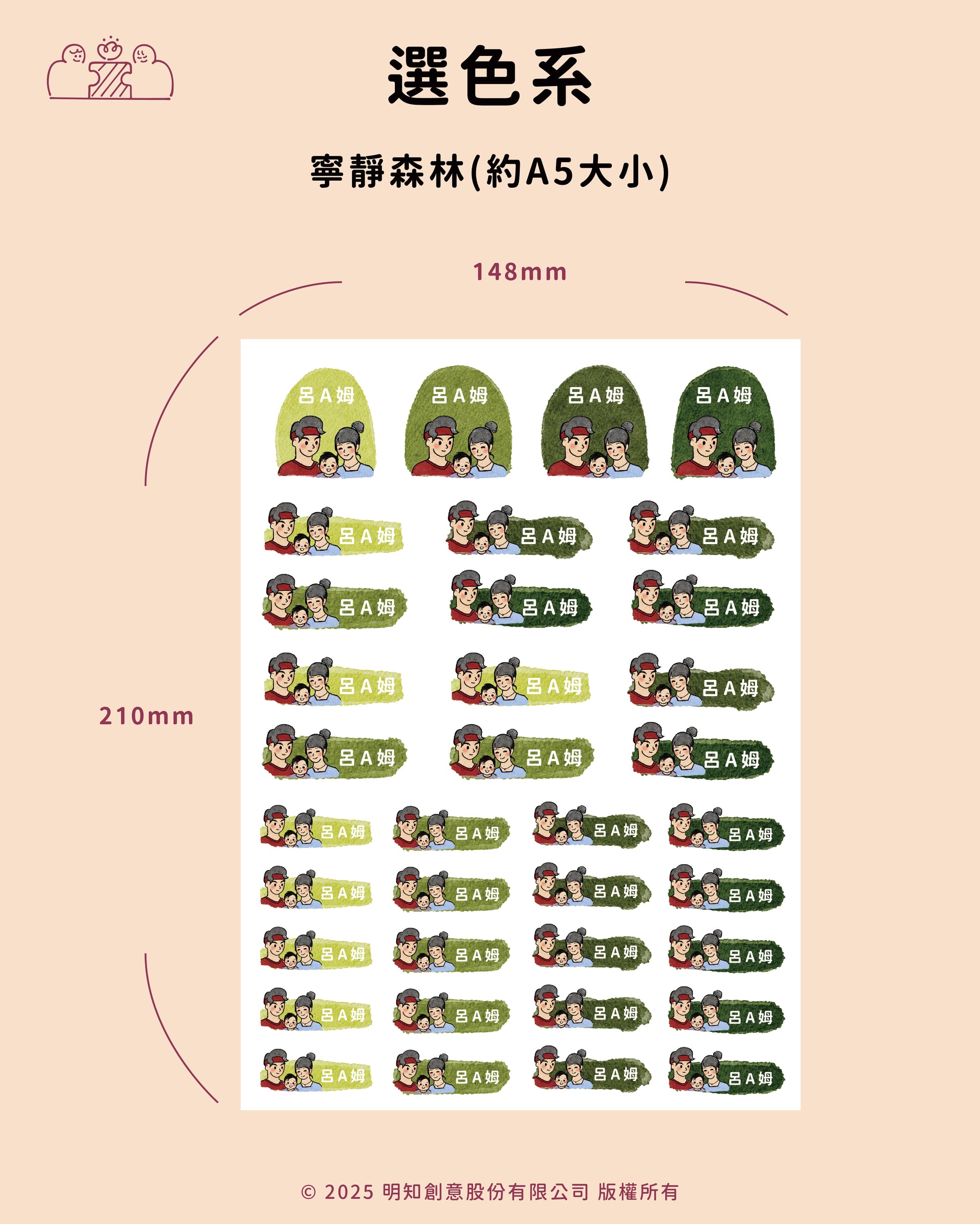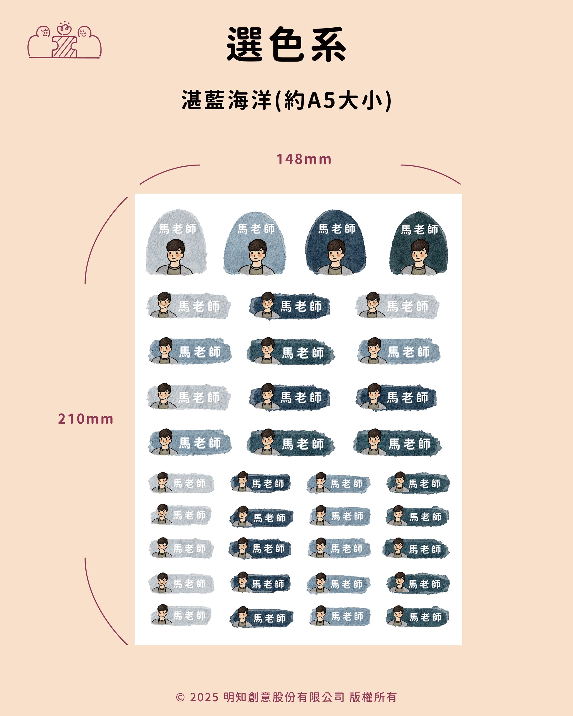 每份尺寸為A5大小,內有36張防水姓名貼