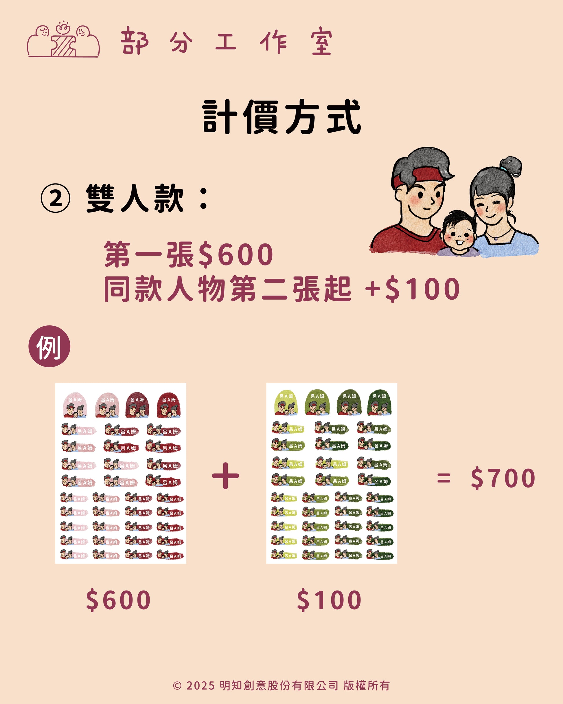 同款似顏繪加購不同色系一張只要+$100