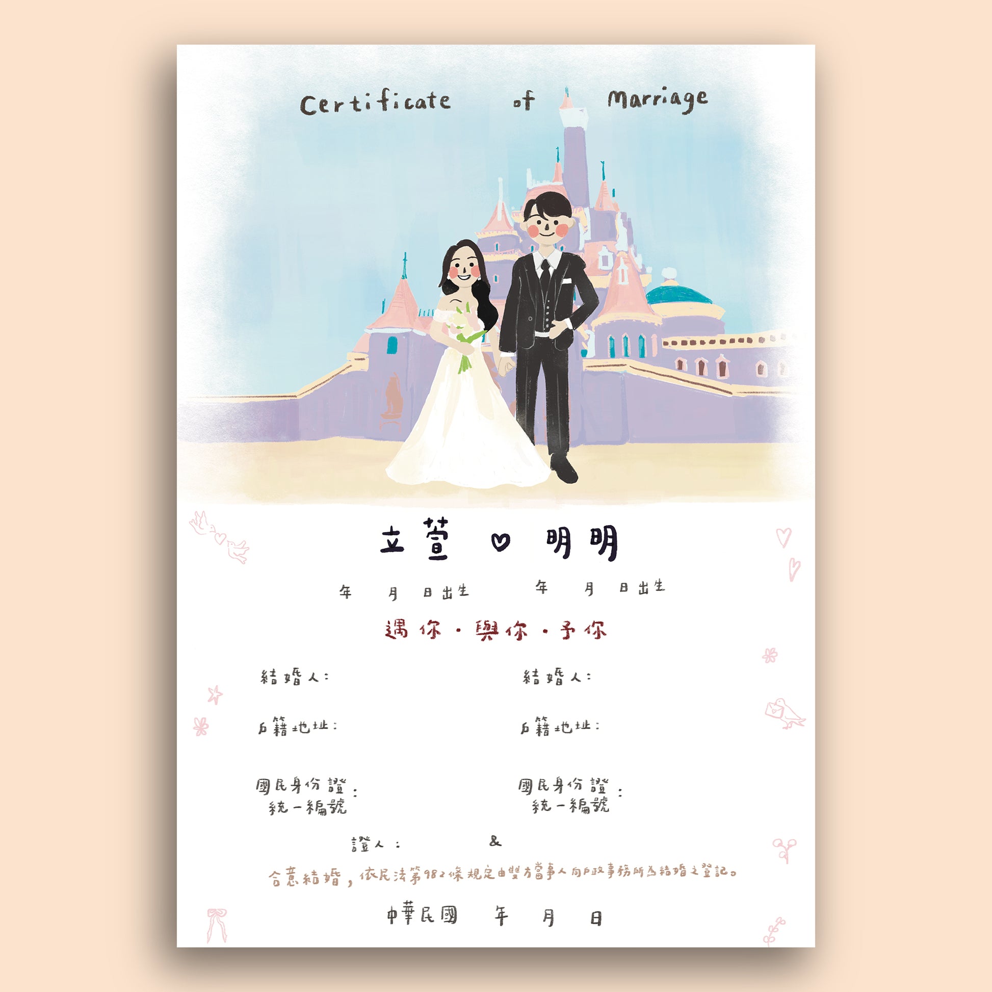 ✨為您所愛提供客製化服務,證書中英文標題/中英文姓名/書約證詞文字皆可客製 ♡