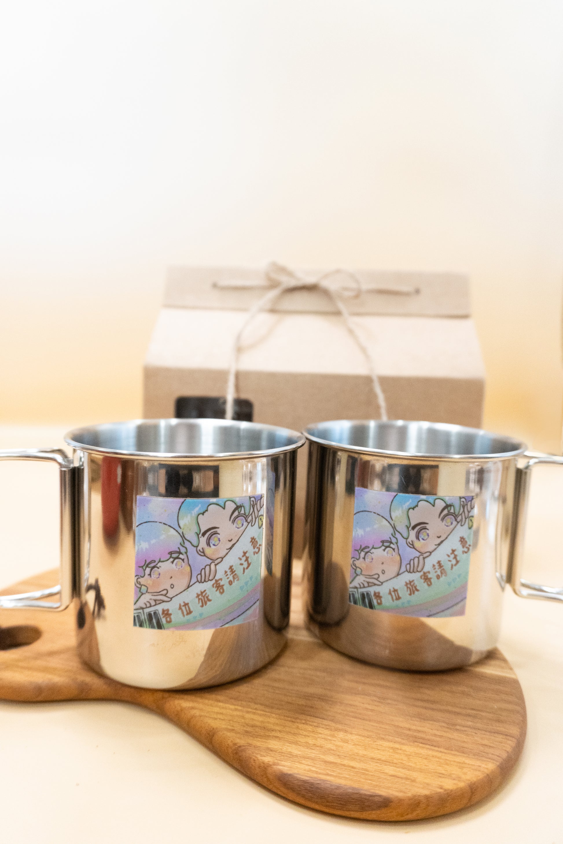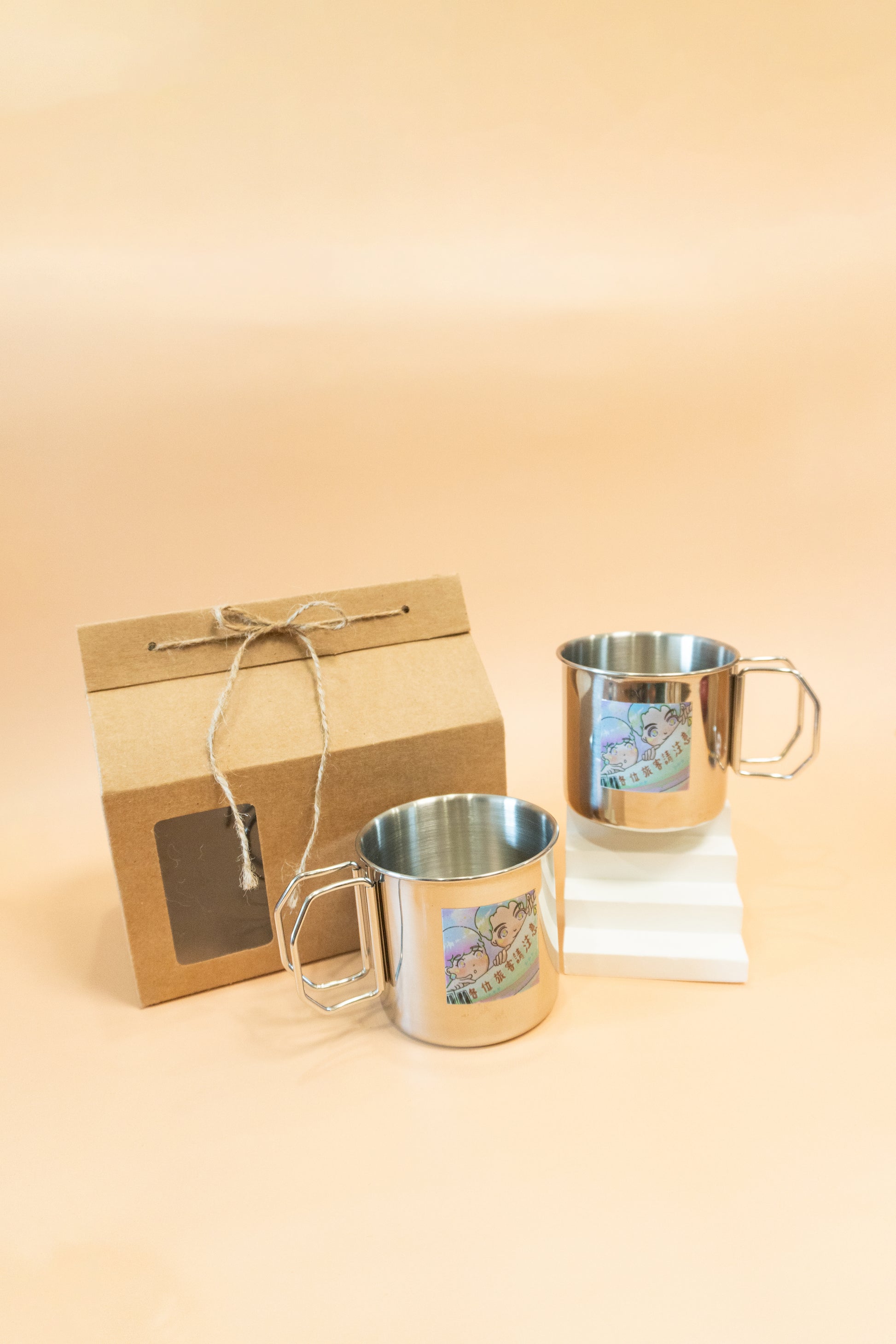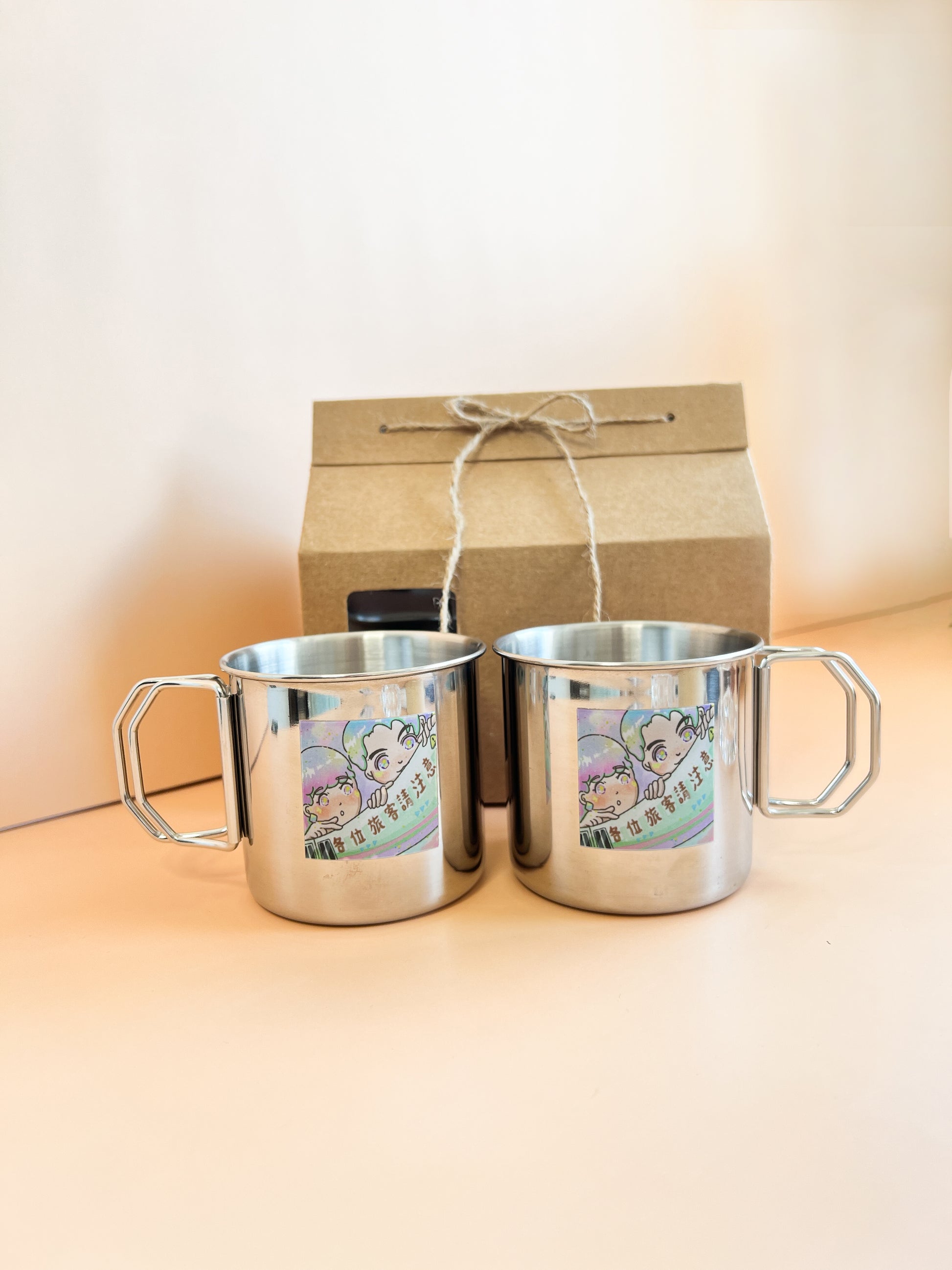 內容物:客製化折疊把手鋼杯二入、禮盒