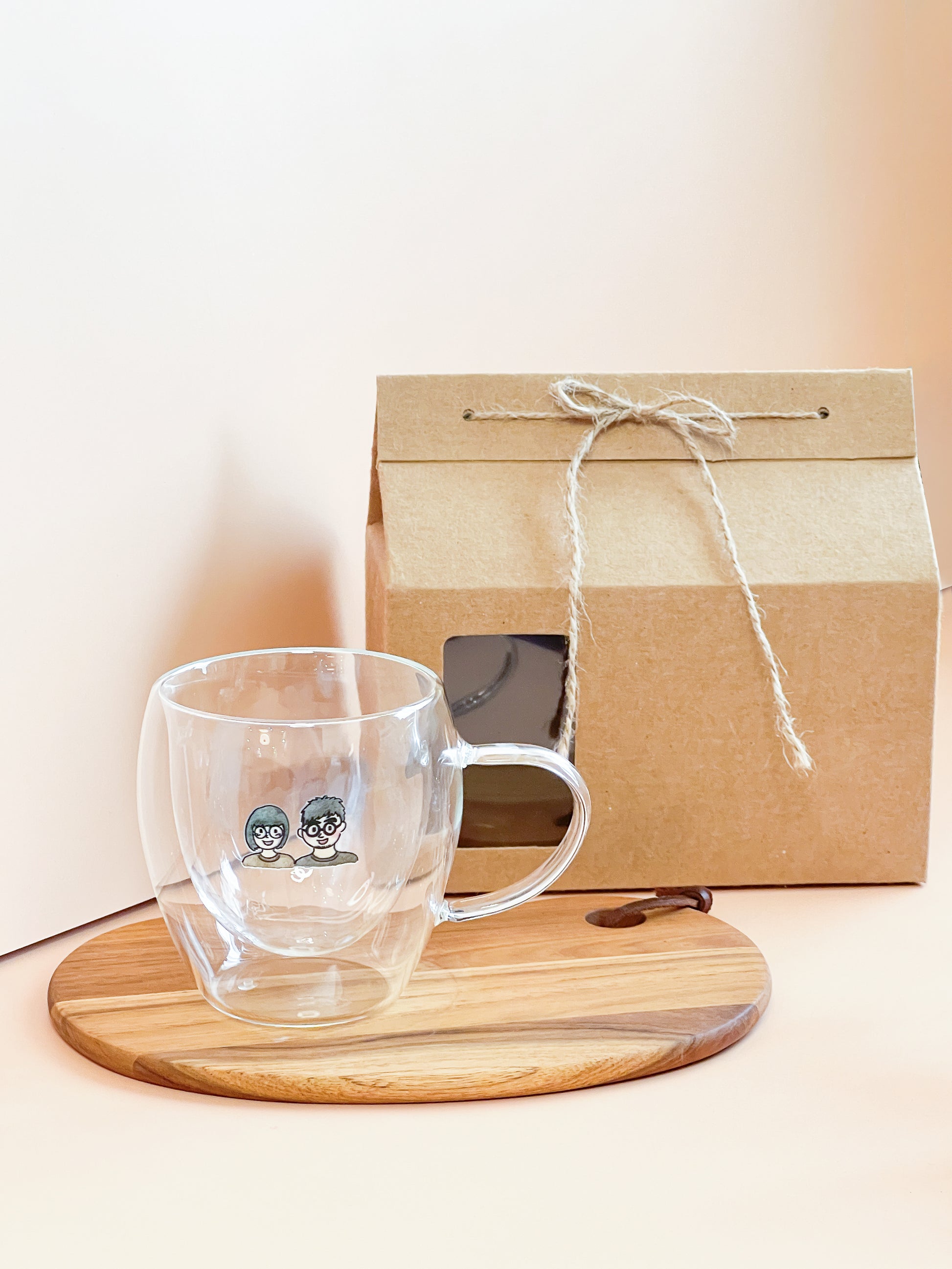 【似顏繪訂製款】雙層隔熱玻璃咖啡杯禮盒|部分工作室