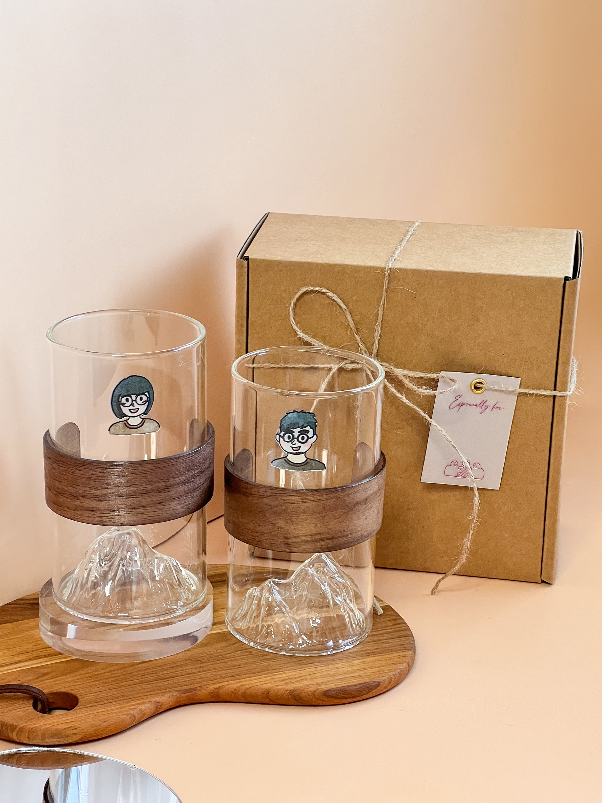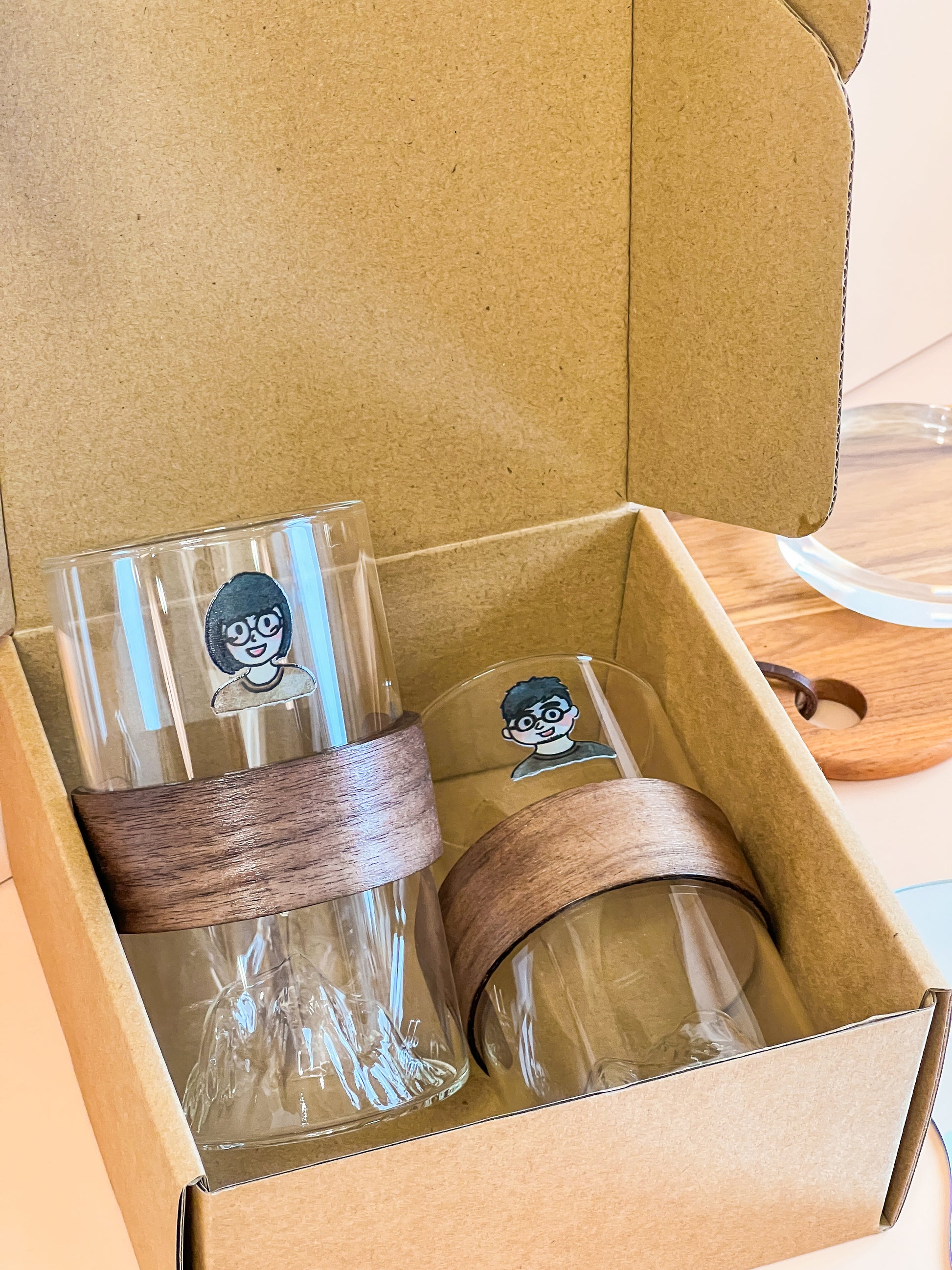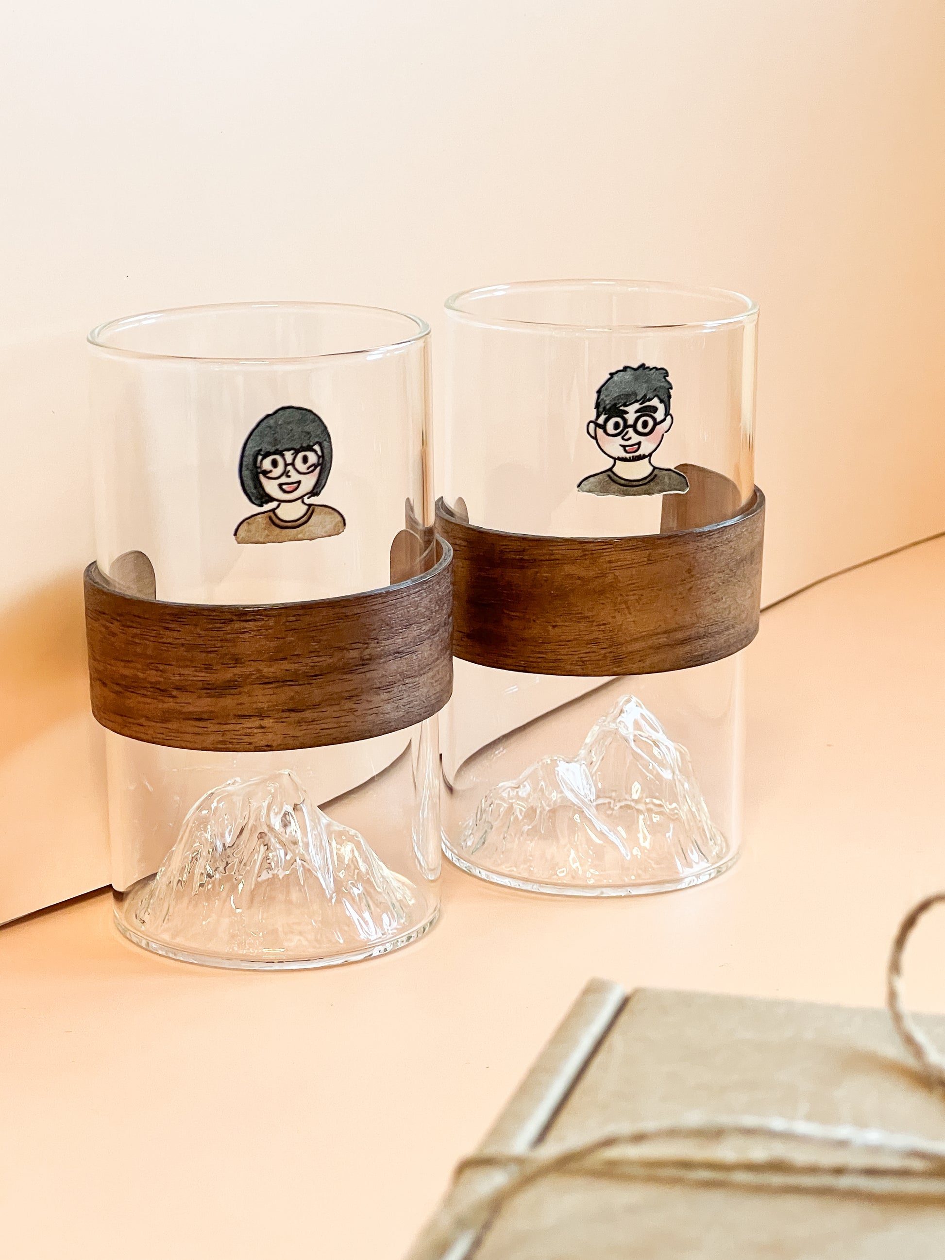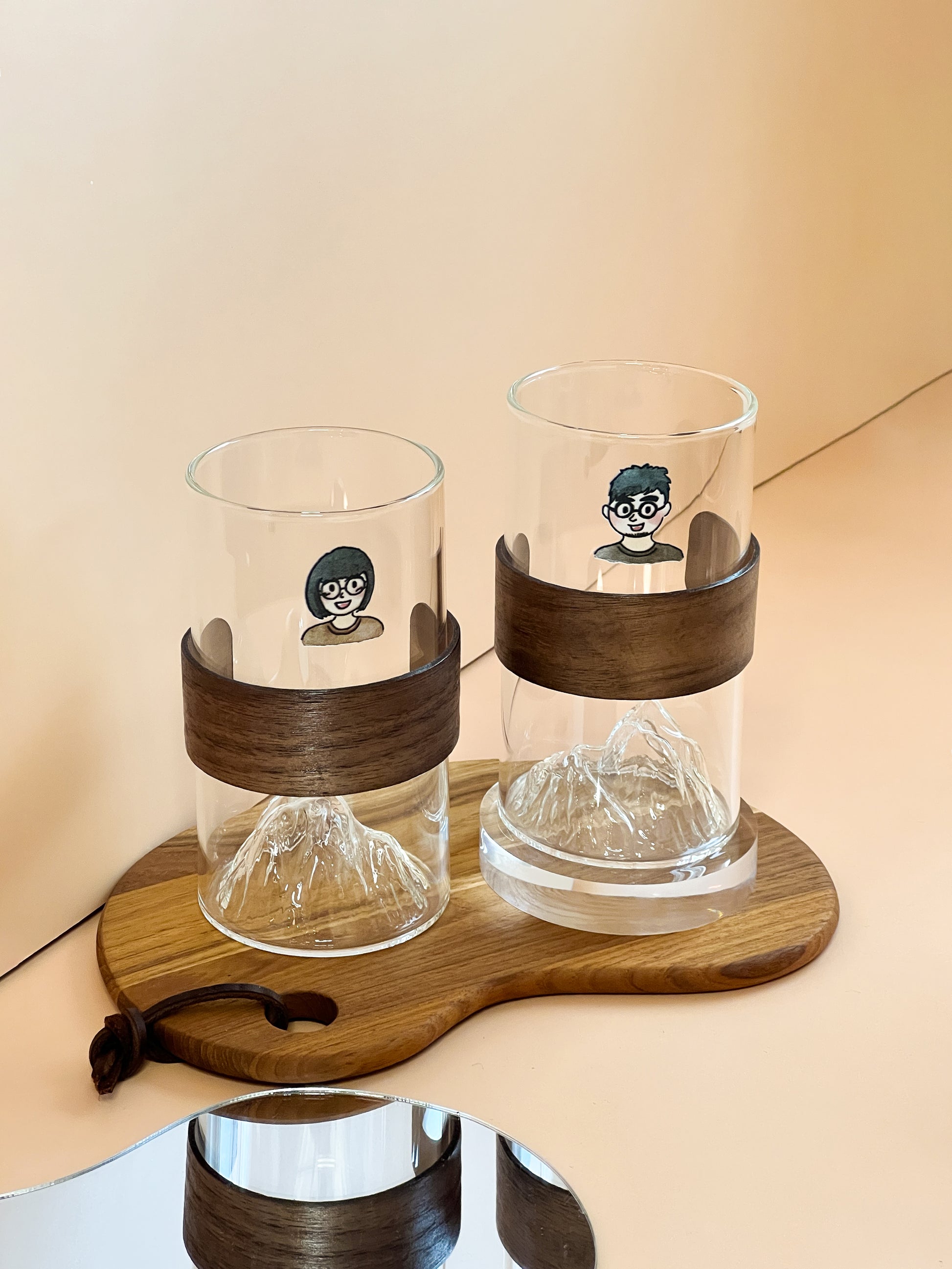 【似顏繪訂製款】富士山防燙玻璃咖啡杯禮盒|部分工作室